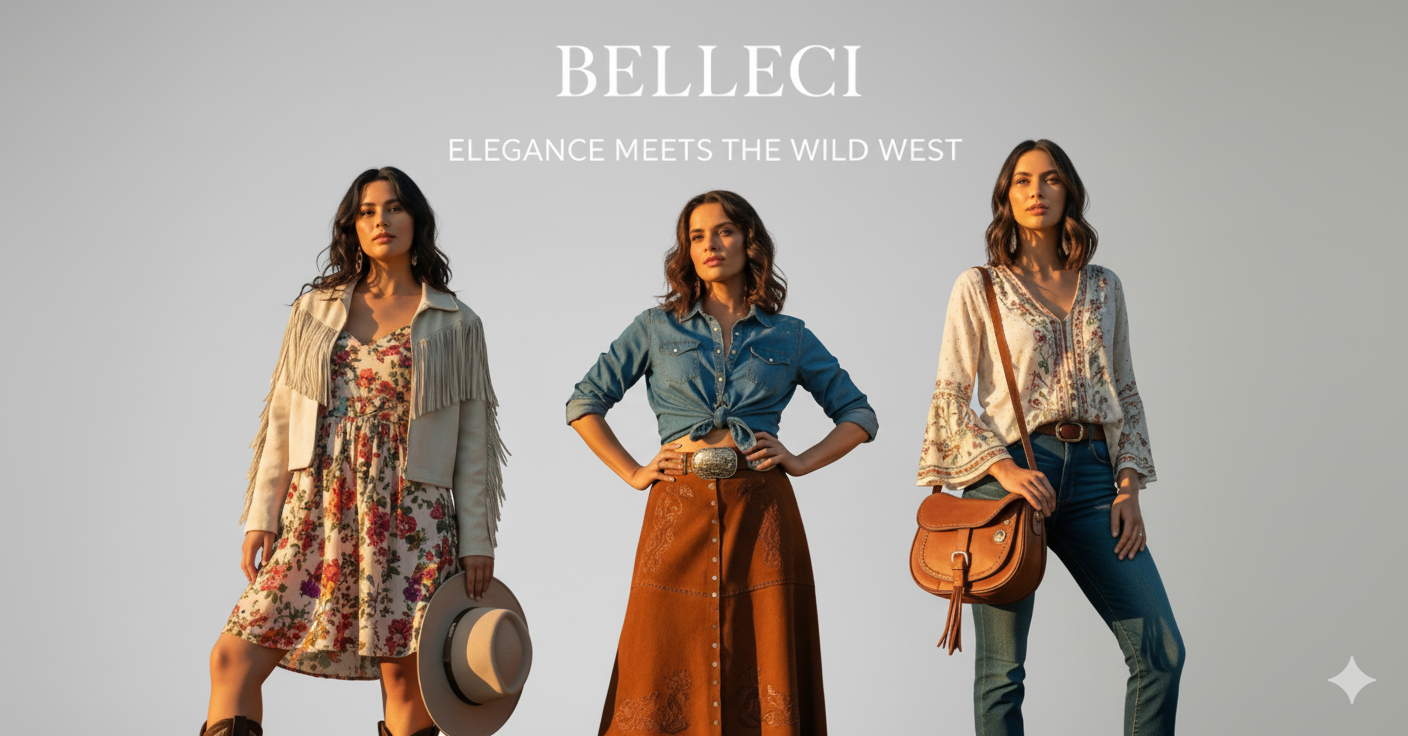 Belleci — First time in India, Since 1989. A women’s western wear brand that blends timeless elegance with bold frontier spirit. From flowing silhouettes to modern western classics, Belleci creates apparel for confident women who embrace beauty, freedom, and style with every stitch. Authentic. Iconic. Unmistakably Belleci.